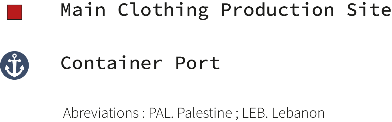 Jordan first became a major clothing production location when a 1996 US preferential trade agreement guaranteed duty-free access to the American market for Made-in-Jordan garments. Since then, multi-national garment producer firms have relocated production facilities to Jordan’s industrial zones, importing production materials like cloth and accessories from Asia to sew clothes in Jordanian factories. 75% of the approximately 80,000 workers fabricating clothing in Jordan’s factories are migrant workers, the vast majority of whom are recruited on 3-year contracts from various countries in South Asia.